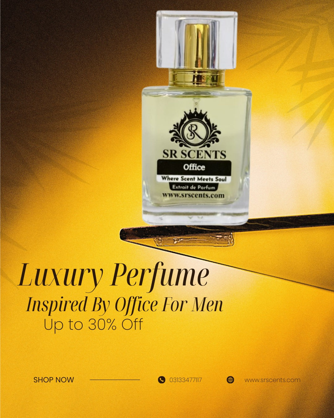 Experience sophistication and confidence with Office Inspired By Office For Men. A perfect blend of fresh Ambroxan, Bergamot, and Orris Root top notes, enriched with Woody, Floral, Ambergris, and Jasmine heart notes, resting on a luxurious base of Musk, Patchouli, Cashalox, and Woody undertones. Ideal for the modern man, this fragrance is elegant, professional, and long-lasting.